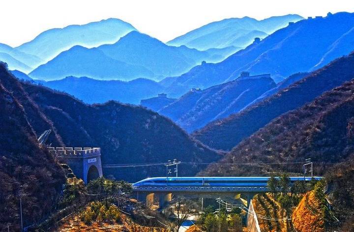 高铁列车驶过长城。国铁集团供图“逢山开路,遇水搭桥”落实铁路规划